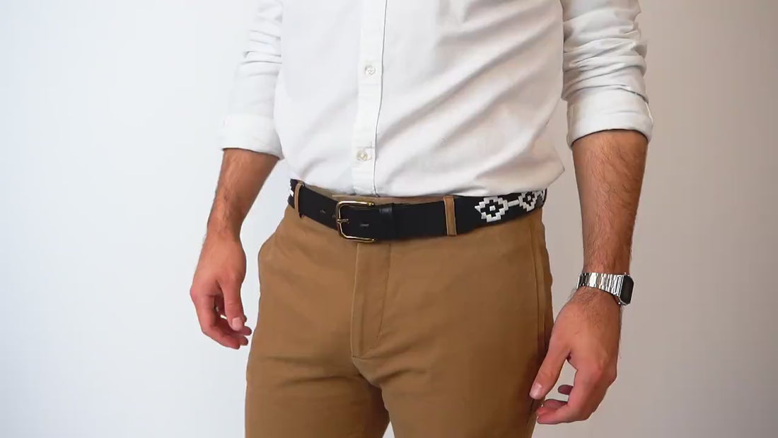 Cedarlof Polo Leather Belt with Blue & White Pampa Diamond Embroidery